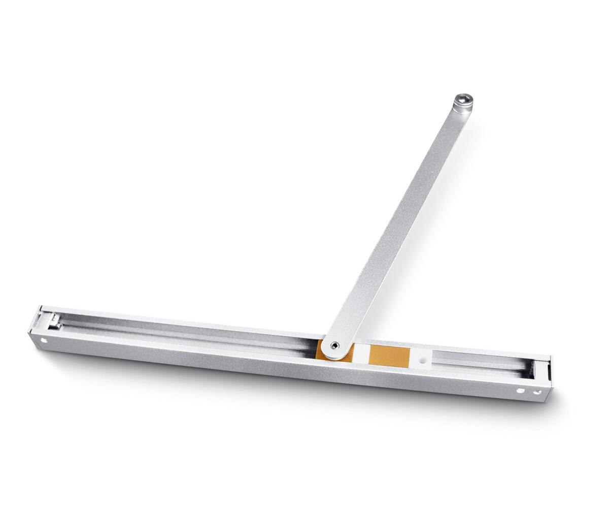 mit integrierter Öffnungsbegrenzung passend für Obentürschließer TS3000V / TS5000 · für rechts und links angeschlagene Türen · Standardmontage auf Band- und Bandgegenseite · bei identischem Anschlagmaß Nachrüstung durch Austausch der Gleitschiene und des Hebels bei eingesetzten Türen problemlos möglich