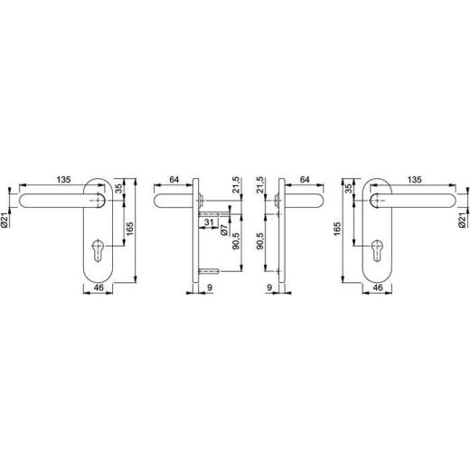 geprüft nach DIN 18273 und DIN EN 1906:37-B140U · Kunststoff · Drückerlänge 135 mm, in U-Form · mit Stahlkern · fest/drehbar gelagert · wartungsfreie Gleitlager · Stahl-Unterkonstruktion · mit HOPPE-Vollstift-Verbindung 9 mm · Kurzschild: Länge 165 mm, · aufklippbare Abdeckschilder · Lochung PZ· Entfernung 72 mm · verdeckte, durchgehende Verschraubung mit Gewindeschrauben M5 · für Türstärke 40-65 mm · DIN links / rechts verwendbar